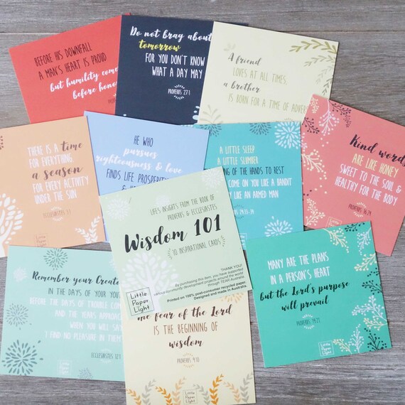 WISDOM 101 Bible Verse Cards Pack Bamboo Stand, Scripture Cards