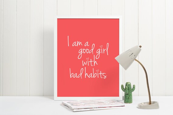 I’m a Good Girl With Bad Habits, Funny Quote Print for the Home or
